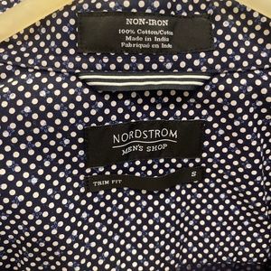 Small Navy Nordstrom Dress Shirt With White Dots and Blue Florals