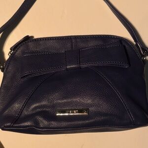 Small Size Nine West Bag Navy Leather Crossbody Bag Bow Front Design Classic Style