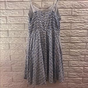 Model is 5’7’’ and wears a size 4. This dress has spaghetti straps and a zippered back. It also has a flowing skirt, perfect to dress up or dress down as desired. Machine washable.