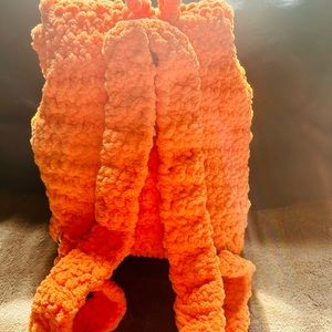This is a handmade crochet backpack. It can fit a cellphone, water bottle and more.