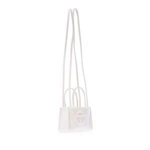 Featuring a double strap (handles and cross-body straps), embossed logo, and magnetic snap closure. Made from faux leather and twill lining. Bag is packaged in a drawstring bag with screen-printed logo.