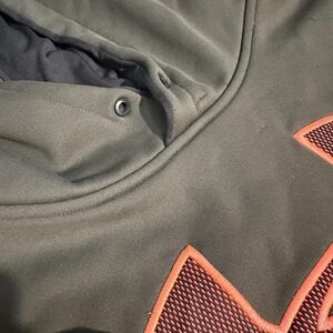 olive green, hoodie, athletic, sporty, pullover, zip-up, casual wear, lightweight, logo accents, street style