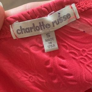 Super cute small Charlotte Russe bright summery strapless mini dress. Color is somewhere between like a watermelon, rose and salmon pink. The mannequin photos show a more accurate color than the latter.