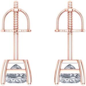 Small Pink Women's Solitaire Princess Cut Rose Gold Plated 925 Sterling Silver Tiny CZ Stud Screw Back Earrings