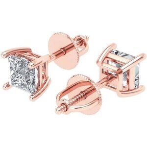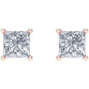 Small Pink Women's Solitaire Princess Cut Rose Gold Plated CZ Stud Earrings