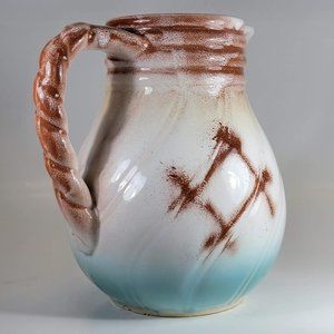Small Pitcher Vase Japanese Hand Painted Rope Design White Glossy Glaze 6" Tall. Pre Owned.