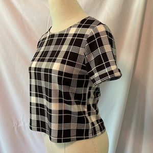 Small Plaid Black and White Cuffed Sleeve Shirt