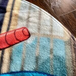 Soft little round rug featuring Marvel Spider-Man in good preowned condition. No apparent flaws. Very bright colors.