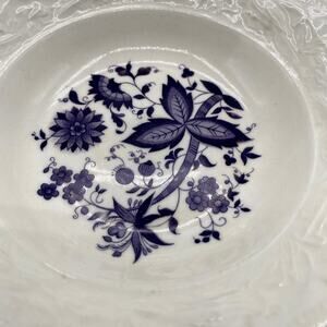 White with dark blue floral pattern