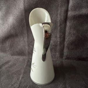 Made exclusively for Grace China, small slim creamer, white with gray and silver floral design and silver trim, Patter: Alyson #586, Sevei Japan, 5.5” tall x 2” opening, very good condition