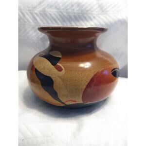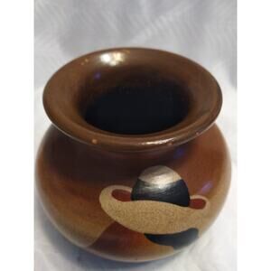 Small Painted People pottery pot. Very cure and colorful. does have a few chips (see pictures).