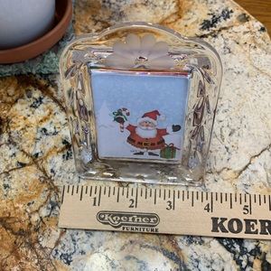 This small Princess House Crystal hand cut picture frame holds a 2“ x 2“ photo and is 4 5/8 inches. It is in the Heritage Romantic Collection.It would make a perfect stocking stuffer for that special person.