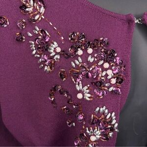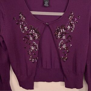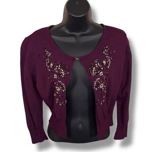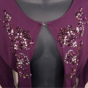 Small Purple Beaded Cardigan Cropped 3/4 Sleeve Retro Pinup Event Party Wedding