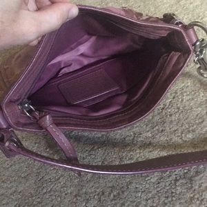 A Coach small purse perfect for day or night time use. It is a mauve color. Used a few times.