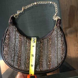 Get on the small/Tiny bag trend. This beautiful sparkly bag is ready for a night out! Velvet fabric with beautiful beaded work on the front.