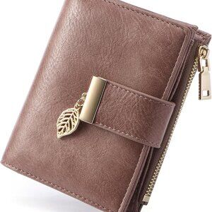 Small RFID Blocking Leather Wallet for Women Compact Bifold with Zipper