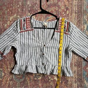 Small Raga Women’s Striped cropped Boho Blouse with Button & Embroidered Details