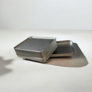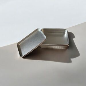 Small Rectangle Silver Tin Storage Container With Removable Lid 5.5”x 5”x 1.5”