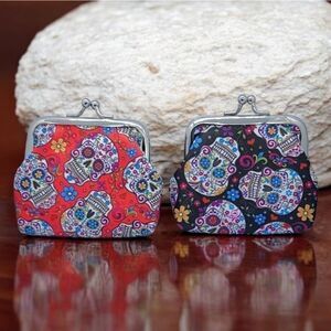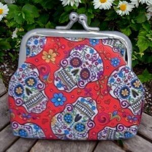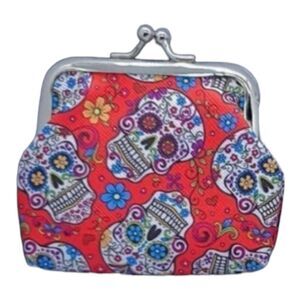 Small Red Sugar Skull Coin Pouch Mini Change Purse Day of the Dead Gothic Grunge