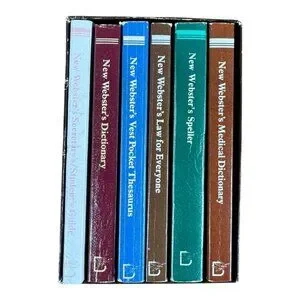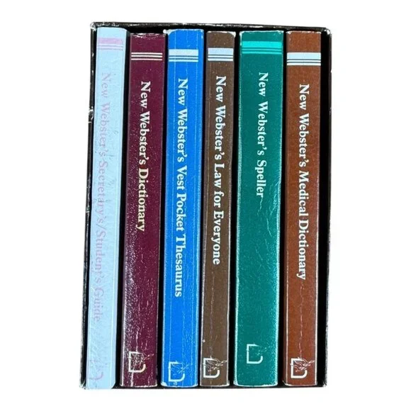 This is a collection of dictionaries and reference books that are an incredible resource. They are small and perfect for display or use. The entire set iwth its holder measures 6" by 4"