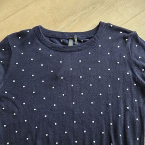 Small Renee C Jerri Deep Navy & White Polka Dot Cotton Blend Pullover EUC