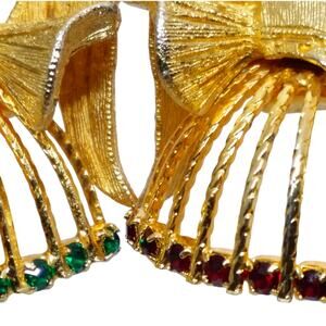 Small Rhinestone Angel Brooch Gold Tone Pair Cherub Pin Red Green Crystal