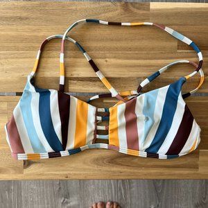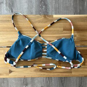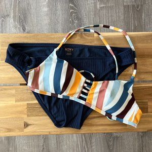 Like new small, striped Roxy bikini top with ribbed navy bottoms. Flattering cut. Adjustable straps on top. Fun swimsuit to add into the mix.