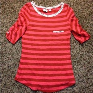Small Ruched & Ruled Tee by Postmark. Has cute contrasting neckline & pocket trim. Like new.
