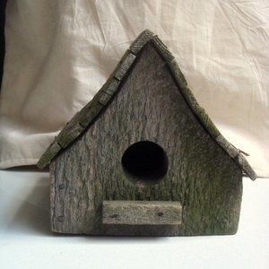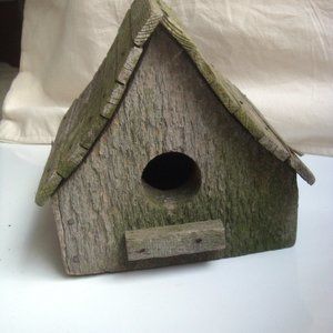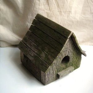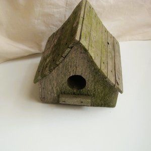 Small Rustic Primitive Wood A-frame Sitting Birdhouse