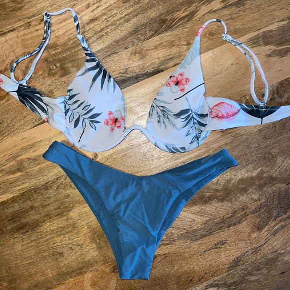 Bikini from Shien. Blue/floral pattern. Size small. Never worn. Only tired on.