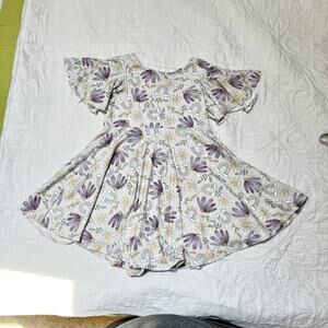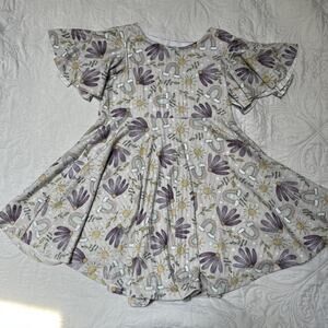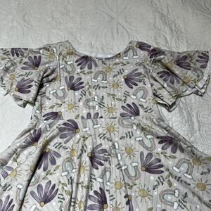 Rowdy Riley Creations flutter sleeve twirl dress in spring watercolor rainbow floral. Super twirly skirt handmade custom ordered small shop dress. Very flexible sizing - wore initial as a dress then as a tunic style top. Size 4.