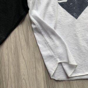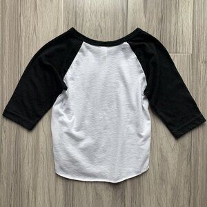 Unknown smallshop printed on American Apparel black & white raglan baseball tee.