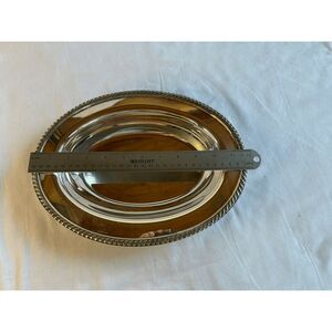 This is a smaller silver platter with a lid and handles on it. I do not know for sure if it is real silver although it is on the heavier side and there is some discoloration to it like silver does. It could be cleaned up a little bit. There is a sticker on the bottom but I cannot read it. It measures about 12" long, 9" wide, and 3" tall.