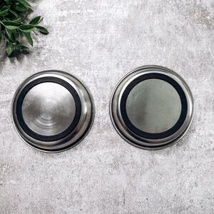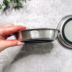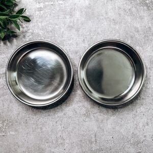 Good gently used condition -- there is some scratching on the material. Stainless steel is a healthier option for your pet to eat/drink from!