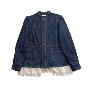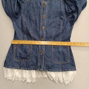 Small Size 14 Jean Jacket Lace Trim Button Up I.E Relaxed Dark Denim
