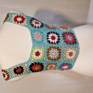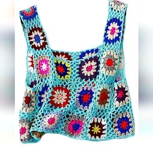 Small Size Womens Crochet Tank Top Knit Colorful Floral Embroidery Summer Boho C