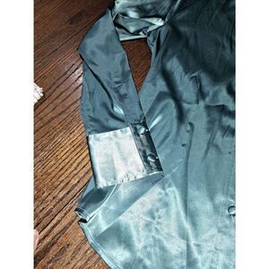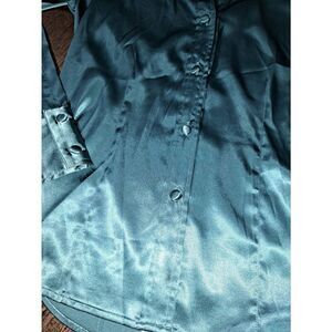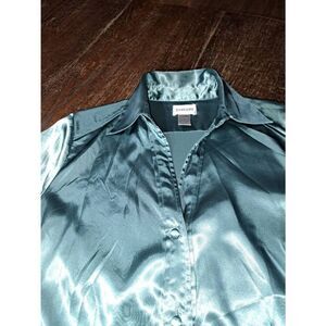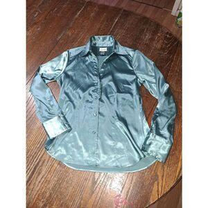 Good Used Condition Women's Small Size 4 Chicos Size 0 Aquaish-Greenish-Bluish Deep V-Neck V-Cut Long Sleeve Button Front Silky Silk-Like Blouse