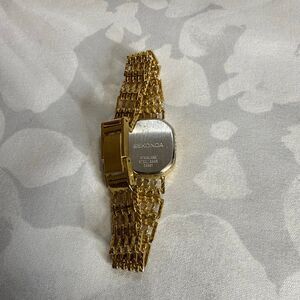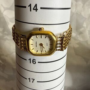 This vintage Sekonda watch features a small, slim design with an oval dial and a gold stainless steel bracelet. Made in the 1970s, the watch has a classic style with baton indexes and a 12-hour dial. The quartz movement ensures accurate timekeeping, making it a stylish and reliable accessory for women. The vintage Sekonda watch is a timeless piece that exudes elegance and sophistication with its gold case and bracelet. Perfect for those who appreciate classic and unique timepieces.