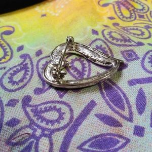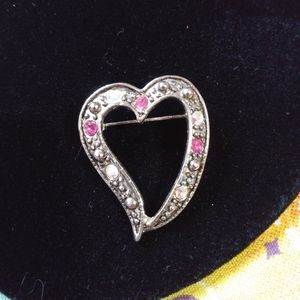 Small sliver heart pin with jewels, it is 1" tall, in great condition!