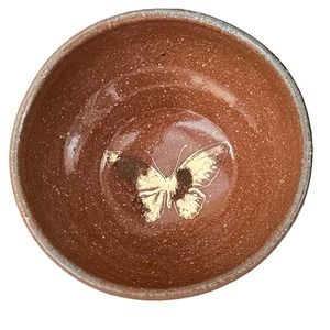 Small Speckled Brown Pottery Bowl with Butterflies in Genuine Gold