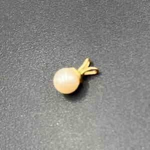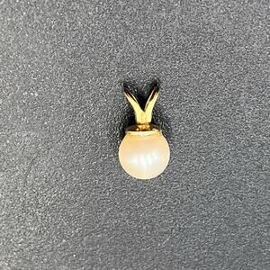 Small Stamped 14K Yellow Gold Cream Off White 5.5 mm Pearl Pendant .5 grams