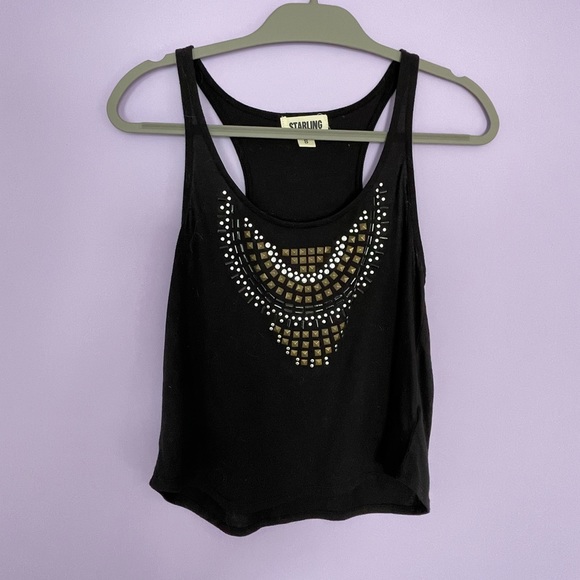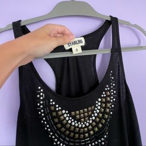Black tank with stud detail on front.
