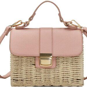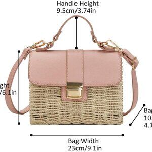 Small Straw Crossbody Bag Women Rattan Woven Top Handle Summer Beach Purse