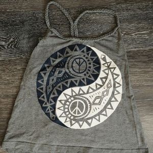 The DARE, Tribal Print, Black v neck tank, and Grey graphic tank are all size small and from Forever 21