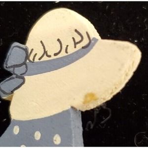 Small Sunbonnet Sue Lapel Pin Brooch Hand-made OOAK Initialed BT in good pre-owned condition. There is a small stain on bonnet near edge. See photos for details. POOS