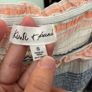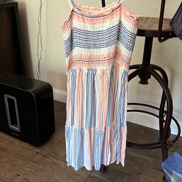 small blue, white, and pink sundress. Super comfortable and fits like a small. Adjustable straps too. In great condition as it has only been worn twice.