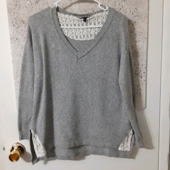 Super comfy overly sized sweater. Slit sides on the bottom with lace. Sz small, really cute with leggings!