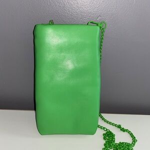 Small TARGET Puffer Faux Leather Crossbody Bag Greene Removable Chain Strap