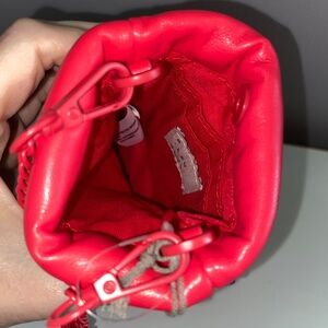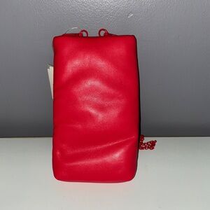 Small TARGET Puffer Faux Leather Crossbody Bag Solid Red Removable Chain Strap