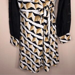 Small THML Dress Long Sleeve Black Beige White Geometric Print Tie Accent